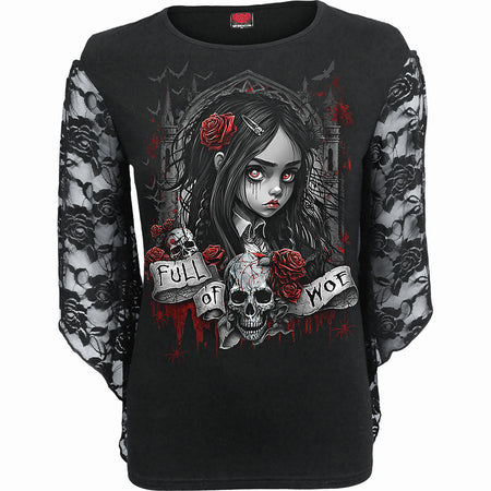 HALLOW'S EVE - Rose Lace Sleeve Top