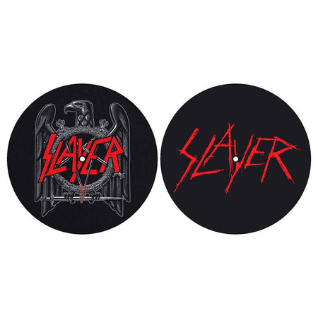 Slayer Turntable Slipmat Set: Pentagram / Wehrmacht An official licensed Slayer Turntable Slipmat Set featuring the 'Pentagram / Wehrmacht' design motif. Style Description Each pack contains 2 slipmats for turntables...