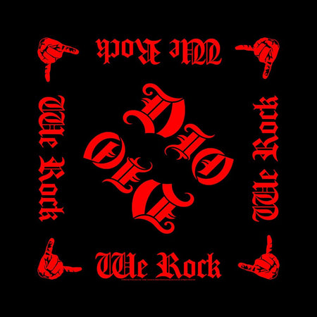 Dio Unisex Bandana: We Rock Official licensed Dio Unisex Bandana featuring the 'We Rock' design motif. Style Description High quality red & black unisex bandana featuring screen printing, hemmed edging....