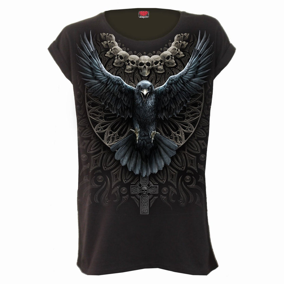 RAVEN SKULL - Turnup Sleeve Loosefit Tee