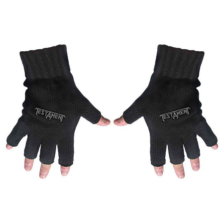 Testament Unisex Fingerless Gloves: Logo An official licensed Testament Unisex Fingerless Gloves featuring the 'Logo' design motif. This high quality Fingerless Gloves is available in a black colourway. Style Description...